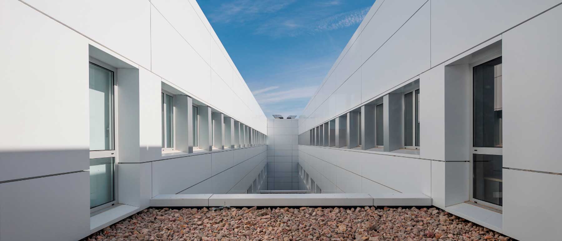 Para dar respuesta a estas demandas, Saint-Gobain ofrece soluciones integrales que combinan confort, eficiencia y sostenibilidad. Las fachadas ENVEO proporcionan aislamiento térmico y acústico mediante cerramientos completos, fachadas ventiladas y SATE. Los sistemas de muro cortina y los vidrios COOL-LITE ® XTREME y SKN optimizan la entrada de luz natural y reducen la necesidad de iluminación artificial, al tiempo que mantienen un control solar y una alta eficiencia energética. Los vidrios CLIMALIT ORAÉ® garantizan un aislamiento térmico y acústico de alto rendimiento, mientras que los sistemas CLIMAVER® 360 aseguran conductos de climatización y ventilación con prestaciones térmicas y acústicas excelentes. En los espacios interiores, Saint-Gobain ofrece techos y paneles acústicos, suelos y revestimientos antibacterianos y la tabiquería futuRE, versátil, adaptable y con baja huella de carbono.