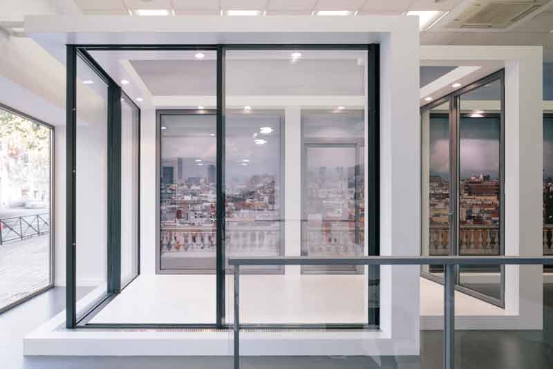 Más de 300 m2, repartidos en tres alturas, donde los productos quedan integrados con el entorno de uso y donde se pueden apreciar todos y cada uno de los acabados finales a través de las muestras reales allí expuestas. Especial protagonismo adquieren los últimos lanzamientos de la marca como las correderas Lumeal XXL y Artyal, con abertura a 90º; la ventana practicable Soleal 75 o la puerta replegable Ambial.